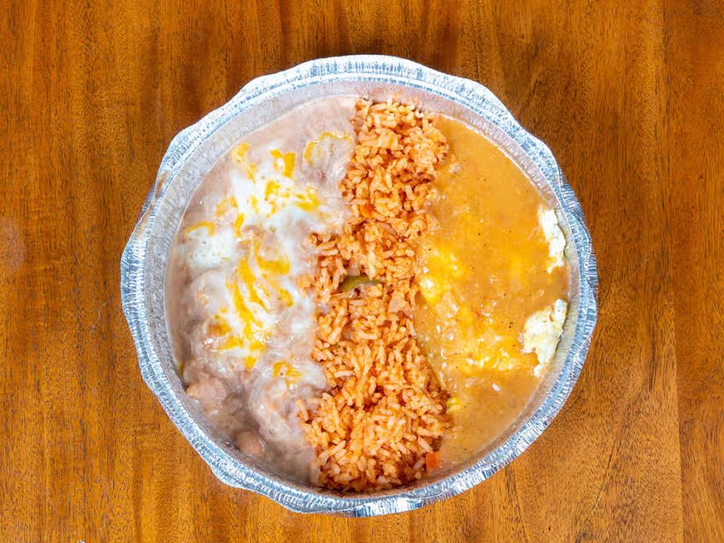 Tortilla chips & Pinto Beans served with Cheese, Sour Cream, Guacamole, and Carne Asada.